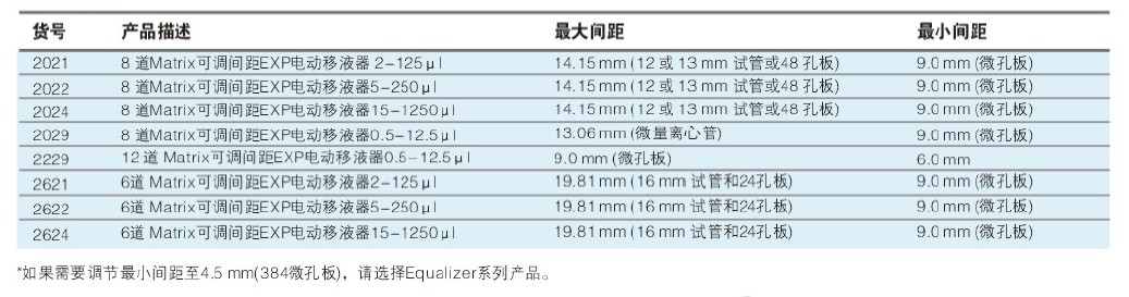 Matrix EXP電動多道可調間距移液器