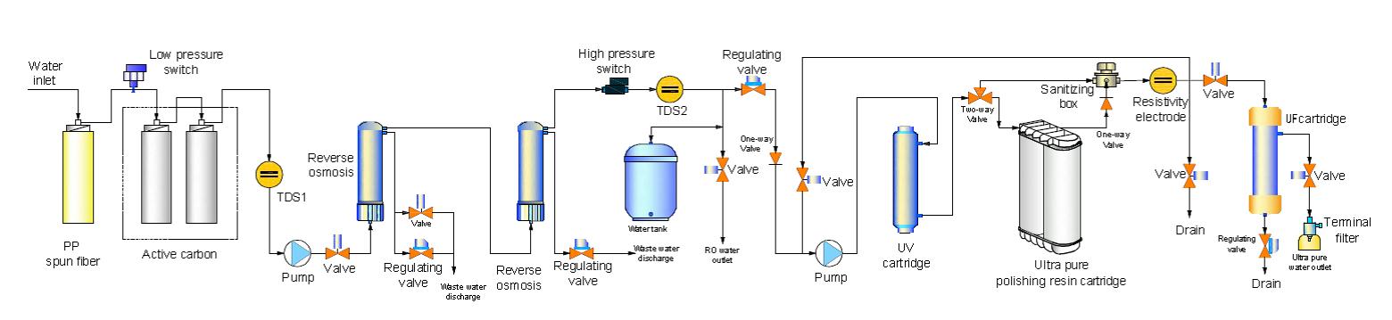 • 可直接制備雙級RO純水和18.2MΩ-cm的超純水